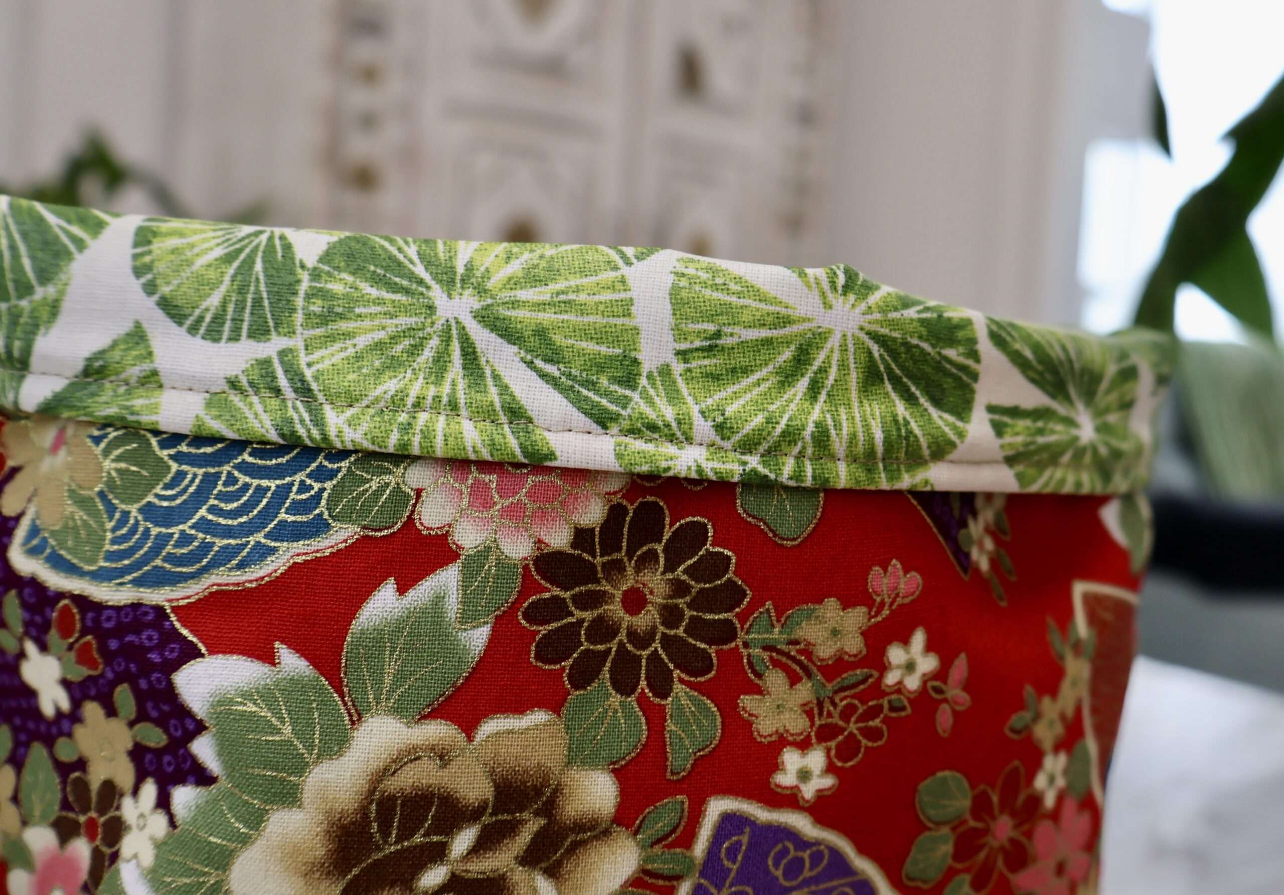 Les matières choisies permettent un nettoyage simple. A l’extérieur, un superbe tissu coton imprimé, en doublure intérieure un coton enduit, imperméable, d’entretien très facile d’un simple coup d’éponge.